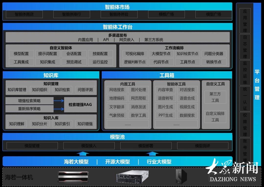 當前,智能體已成為新型應(yīng)用生態(tài)的關(guān)鍵入口。海若一體機作為大模型生產(chǎn)力平臺,將助力客戶管理模型、智能體、私域知識庫等大模型資產(chǎn),推動行業(yè)智能化升級,重塑大模型落地行業(yè)格局,引領(lǐng)智能經(jīng)濟新時代。